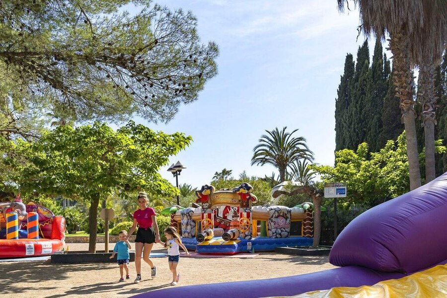 Impossible pour les enfants de s’ennuyer dans ce camping ! Pour chaque tranche d’âge, une mini-club est prévue. Le soir, ils se défoulent sur la piste de la mini-disco, tandis que la journée, ils s’amusent sur l’aire de jeux, dans le château gonflable ou sur le parcours de minigolf. Pendant ce temps, détendez-vous à l’espace bien-être ou sirotez un verre au bar. Vous préférez partir à la découverte des environs ? Louez un vélo et partez explorer la région. Et pour terminer la journée en beauté, optez pour un dîner au restaurant du camping ou concoctez un repas avec des produits locaux achetés à l’épicerie.